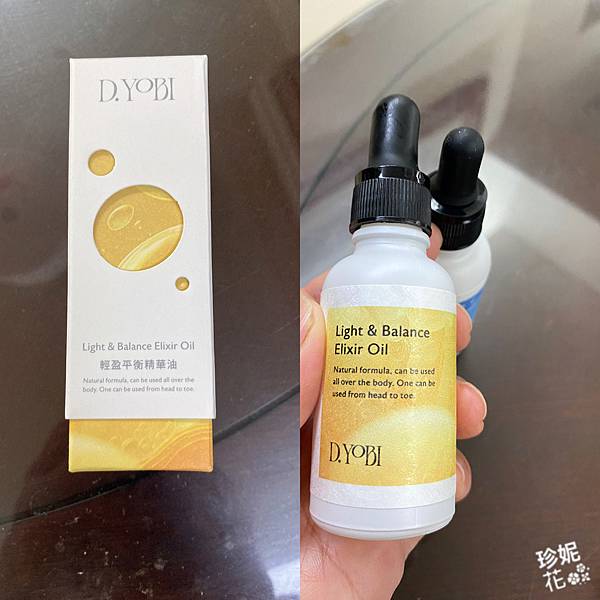 ▼和D.YOBI癒倍好研-極地全效酵母修護精華液一樣, D.YOBI癒倍好研 輕盈平衡精華油也是用紙盒包裝, 不過底色是黃色, 主打提供深層滋潤、修護和平衡的全方位護理。