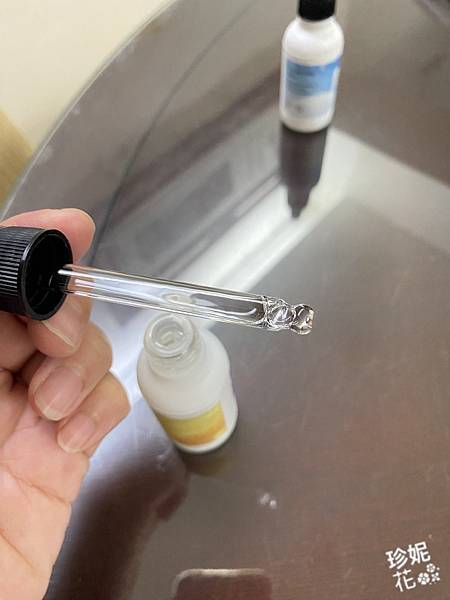 ▼滴出來的平衡精華油不會很黏很油, 相反地, 雖然是油, 看上去很清澈,實際質地很輕盈, 一次不用滴太多在手上, 不然很容易流到地上。